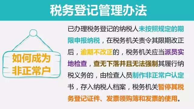 国家税务总局关于进一步完善税务登记管理有关问题的公告(国家税务总局公告2011年第21号)又对非正常户管理做了严格的规定。